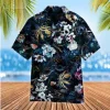 Flower Skull Chest Pocket Short Sleeve Bowling Shirt